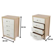 Sinfonier dormitorio 4 cajones color cambria blanco con guias metalicas 90cm...