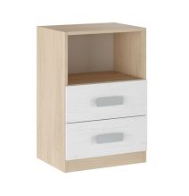 Este conjunto incluye un elegante cabecero y dos mesitas de noche, diseñados con líneas simples y acabados en color blanco mate, características distintivas del estilo nórdico.