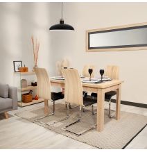 Diseño Moderno y Sofisticado: Esta silla es perfecta para comedores, salones, cocinas, despachos y salas de espera. Su estilo contemporáneo se integra a la perfección en ambientes modernos y sofisticados, aportando elegancia a cualquier rincón. • Dimensiones Perfectas: Con medidas de 44 cm de ancho, 57 cm de largo y 97 cm de alto, esta silla combina estética y funcionalidad. Su estructura cromada con diseño de patas de patín ofrece resistencia y robustez. • Comodidad Acolchada: El asiento está acolchado con espuma de alta calidad y tapizado en polipiel negra, brindando una experiencia de asiento cómoda y estilizada. El respaldo en madera añade un toque de calidez al diseño. • Fácil Mantenimiento: Su material es fácil de limpiar; solo necesitas un paño húmedo para mantenerla impecable, lo que la convierte en una opción práctica para el uso diario. • Montaje Sencillo: La silla requiere montaje, pero no te preocupes; incluye instrucciones claras y todos los herrajes necesarios para un ensamblaje rápido. • Satisfacción Garantizada: Con un servicio post-venta 100% satisfactorio, ofrecemos reposición inmediata y gratuita de piezas extraviadas o dañadas. • Pack Indivisible de Cuatro Unidades: Se vende en un pack indivisible de cuatro sillas, ideal para completar tu comedor o espacio de trabajo.