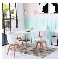 Juego de Comedor Estilo Nórdico: Mesa 100 cm + 4 Sillas Blancas 48 cm x 54 cm x 84 cm – Ideal para Decorar tu Hogar o Café